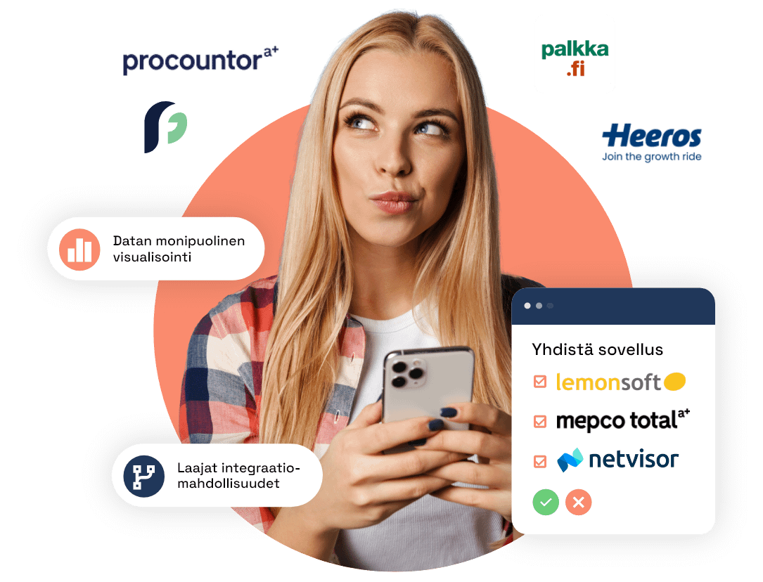 Palkat, myynnit, työajat, poissaolot – kaikki napin painalluksella. Unohda Excel-urakat ja vie tiedot suoraan päätöksentekoon.