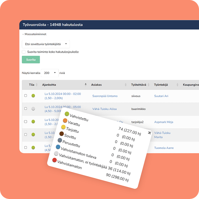 Vuorosuunnittelu, poissaolot, viestintä ja raportointi – kaikki yhdessä.